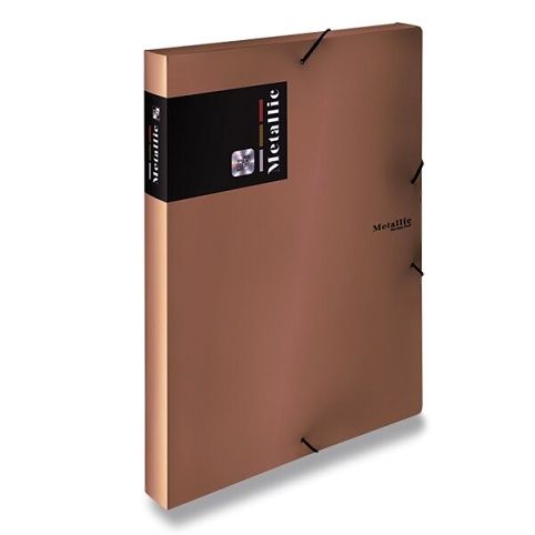 Box na dokumenty Metallic z neprůhledného polypropylenu s uzavírací gumičkou na dokumenty A4. Hřbet 30 mm. Rozměr 326 x 246 x 30 mm.