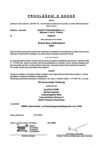 Box na potraviny se zaklapávacím uzávěrem a s přepážkou uvnitř je vyroben ze zdravotně nezávadného materiálu a zaručuje bezpečné a hygienické uložení svačinky bez rizika potřísnění či jiného znehodnocení ostatní výbavy školáka. Údržba: potravinové boxy se myjí standardními mycími prostředky. Nelze je dávat do myčky a mikrovlnné troubyUPOZORNĚNÍ: Na boční straně boxu se nachází dvě stopy po vtoku (viz. ilustrační fotografie), kterými vtéká plast do formy. Nejedná se tedy o výrobní vadu!