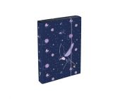 Oblíbený box na sešity JUMBO ve formátu A4. Nezbytná součást vybavení každého školáka na uložení sešitů, papírů a dalších školních pomůcek. Odolný materiál - lamino, chrání proti poškození. Zavírání na gumičku. Šířka hřbetu 4,5 cm.