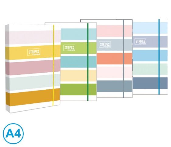 Lepenka 1,5 mm- zavírání na gumičku- formát: A4- rozměr: 220 x 320 mm- šířka hřbetu: 3 cm- mix barev