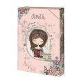 Školní box velikosti A4 na sešity a jiné dokumenty s motivem známého děvčátka Anekke z dílny španělské designérky. Box je z tvrdého papírového materiálu uzavřen ze všech stran s PUV lakováním, vnitřním potiskem a rozvrhem hodin. Box má gumičky v horní a dolní části, které brání samovolnému otevření. Školní box chrání sešity před poškozením a navíc, vaše školačka bude mít všechny sešity pohromadě.