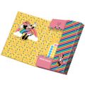 Školní box velikosti A4 na sešity a jiné dokumenty. Box je z tvrdého papírového materiálu uzavřen ze všech stran s PUV lakováním, vnitřním potiskem a rozvrhem hodin. Box má gumičky v horní a dolní části, které brání samovolnému otevření. Školní box chrání sešity před poškozením a navíc, vaše školačka bude mít všechny sešity pohromadě.