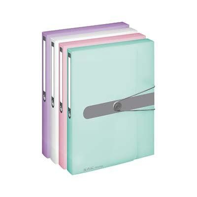 Box na spisy easy orga Pastell A4/4 cm, PP, zavírání gumičkou na plastový kroužek, kapacita 400 listů, nalepený štítek na hřbetu, mint