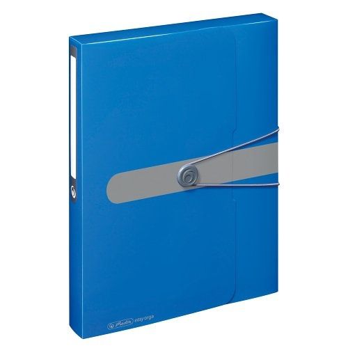 Box na spisy easy orga A4/4 cm, PP, zavírání gumičkou na plastový kroužek, kapacita 400 listů, nalepený štítek na hřbetu, neprůhledný - modrý