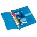 Box na spisy easy orga A4/4 cm, PP, zavírání gumičkou na plastový kroužek, kapacita 400 listů, nalepený štítek na hřbetu, transparentní - modrý