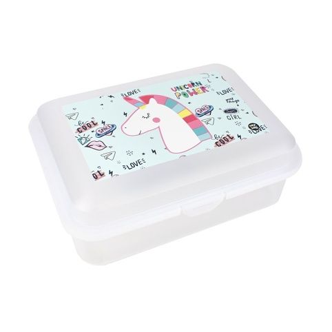 Dětský plastový box na svačinu s motivem jednorožce.