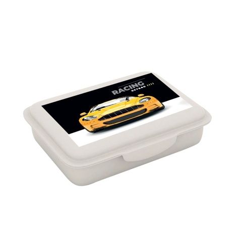 Plastový box na svačinu s motivem auta. Vhodné do myčky, pro ohřev v mikrovlnce nechejte box otevřený.