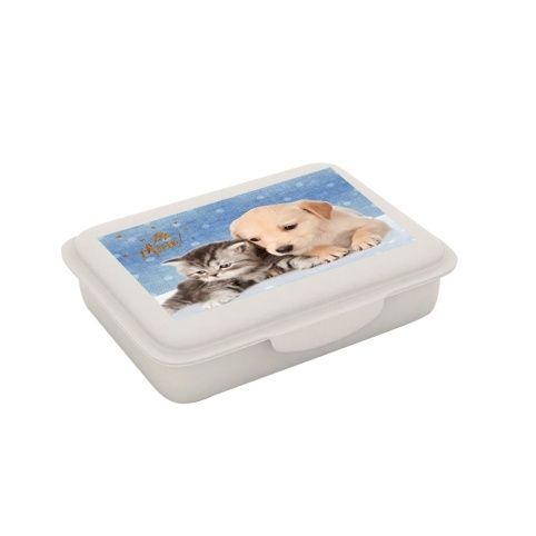 Plastový box na svačinu s motivem mazlíčků. Vhodné do myčky, pro ohřev v mikrovlnce nechejte box otevřený.