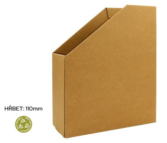 Velmi pevný skládací box na ukládání dokumentů- eco friendly recyklovatelný materiál- kovový úchyt ve hřbetu pro lepší manipulaci- rozměr: 26 x 31cm- hřbet: 110mm- materiál: kraft papír- formát: A4- gramáž: 300g/m2