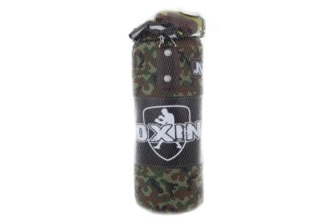 Boxovací pytel o velikosti cca 55 cm s řetízkem na zavěšení a dvěmi boxerskými rukavicemi o velikosti cca 21 cm. Baleno v síťce. Věk 3+