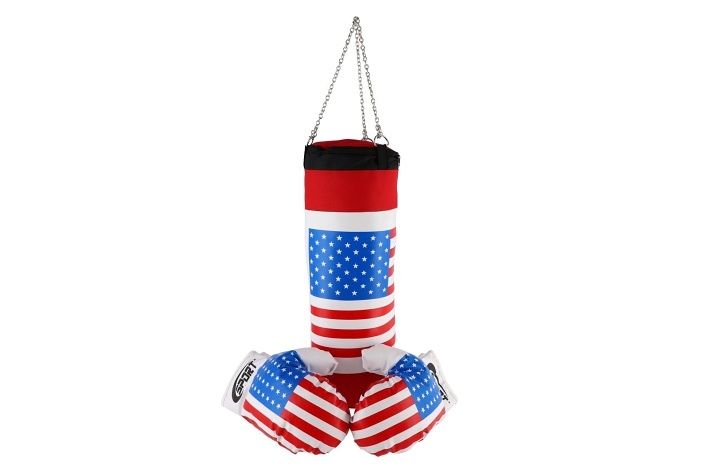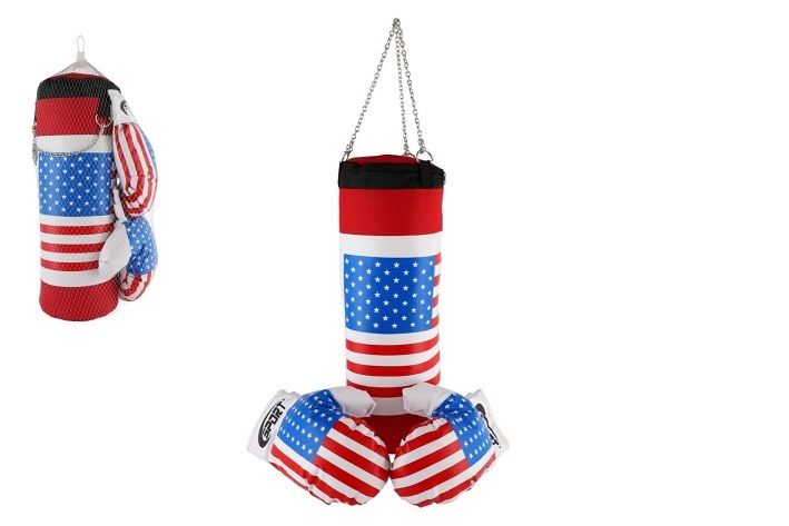 Dětská boxovací sada s motivem americké vlajky. Veďte své děti ke sportu. Jednoduchý nástroj jak zabavit unuděné děti, nebo vybít jejich energii. Určitě zažijete i spousty zábavy.