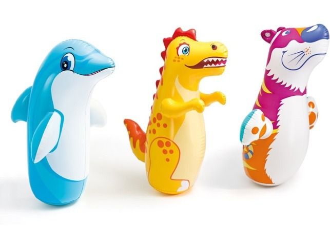 INTEX 44669 Boxovací nafukovací zvířátko 91 x 61 cm s vodní záteží 3 druhy (tygr, delfín, drak). Dětské nafukovací boxovací zvířátko ve třech různých provedeních jistě potěší a rozptýlí každé dítko nejen při letních radovánkách u vody. Boxovací panák udrží svou stabilitu díky vodní zátěži umístěné ve spodní části této nafukovovací hračky. Nafukovací hračky a potřeby Intex splňují nejpřísnější bezpečnostní normy na zpracování a použité materiály. Rozměry balení (š v h): 13 x 19 x 4,5 cmRozměry hračky dle druhu (š v) 94-98 x 44-61 cmMateriál: vinyl (pvc)Varianty provedení: tygřík, delfínek, dráčekHračka není vhodná pro děti do 3 letHmotnost: 0,33 kg Pokud máte zájem o konkrétní druh, nebo barvu výrobku, specifikujte to, prosím, do poznámky v objednávce