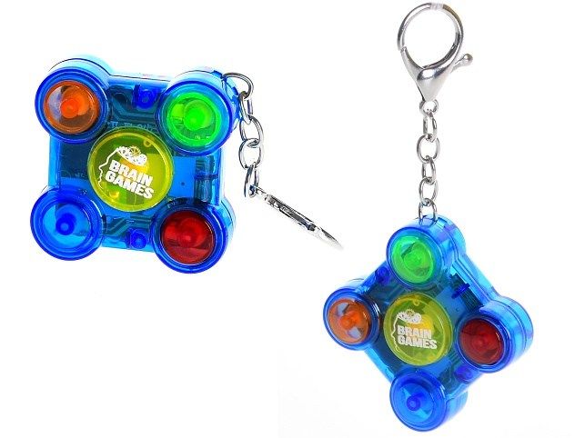 Brain Games klíčenka/test paměti 5x5cm na baterie se světlem a zvukem 3barvy na kartě 12ks