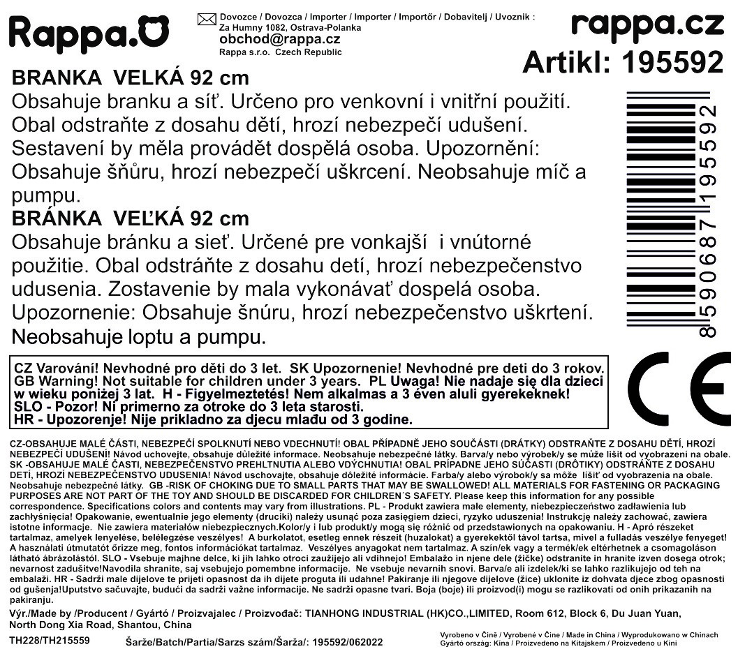Zažij mnoho legrace při venkovních radovánkách a pořiď si tuto praktickou branku! Branka je samozřejmě vhodná i pro vnitřní použití. Lehce sestavitelná branka o velikosti 92 x 56 x 63 cm je vyrobena z PVC. Ideální doplněk pro všechny malé sportovce!