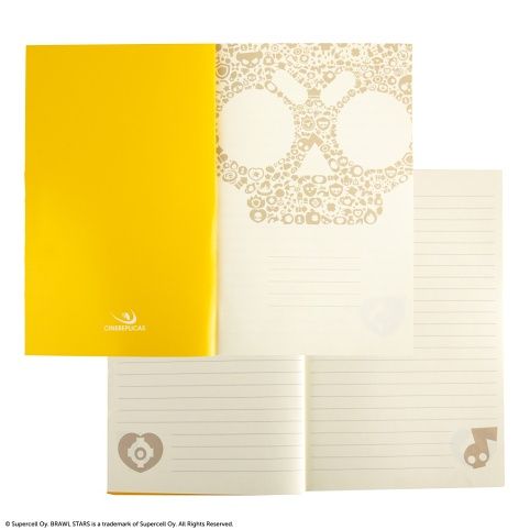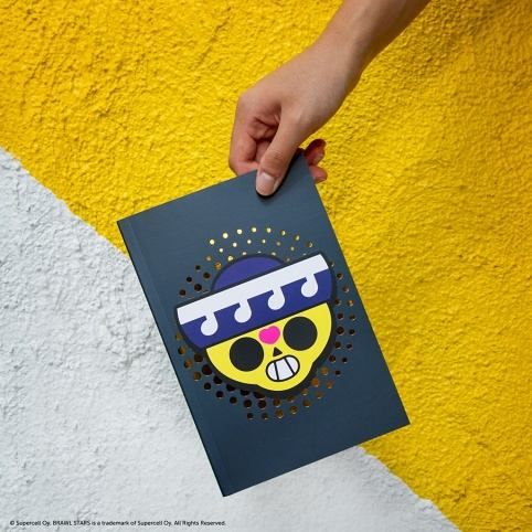 Obal na blok s motivem z populární hry Brawl Stars představuje praktický a stylový doplněk pro každodenní použití ve škole i doma. Tento měkký obal je vyrobený z odolného materiálu, který chrání obsah bloku před poškozením, prachem a nečistotami, čímž prodlužuje životnost sešitů a zápisníků. Povrch obalu je hladký s matným provedením v tmavě modré barvě, což působí elegantně a zároveň moderně. Přední stranu obalu zdobí výrazný a barevný potisk ikonické postavičky Poco, která je charakteristická svou žlutou lebkou s červeným srdíčkem místo nosu a fialovým kloboukem. Tento motiv je doplněn o zlaté tečky kolem lebky, které dodávají designu třpytivý a dynamický efekt. Na zadní straně je pak stylizovaná růžová kytara s lebkou, která doplňuje tematiku Brawl Stars a podtrhuje herní styl celého výrobku. Logo Brawl Stars je decentně umístěno na spodním okraji zadní strany obalu. Uvnitř obalu je vidět, že blok obsahuje linkované stránky s jemnými tematickými motivy, které jsou decentně umístěny v rozích stránek, což přispívá k celkovému hernímu designu a zároveň neomezuje prostor pro psaní. Vnitřní část obalu je žlutá, což kontrastuje s tmavým vnějškem a dodává výrobku svěží a hravý vzhled. Celkově je obal na blok Poco vhodným doplňkem pro fanoušky Brawl Stars, kteří chtějí svou školní výbavu ozvláštnit originálním a kvalitním produktem.