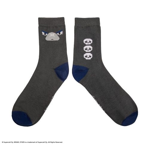 Set ponožek s motivem populární hry Brawl Stars obsahuje tři páry ponožek, které potěší fanoušky této herní série. Každý pár je věnován jedné z herních postav – Spike, Crow a Mr. P – které jsou na ponožkách ztvárněny pomocí výrazných barevných motivů a charakteristických detailů. Ponožky jsou vyrobeny z příjemného a prodyšného materiálu, který zajišťuje komfortní nošení během celého dne. Design jednotlivých ponožek je pestrý a variabilní. Ponožky s motivem Crow mají tmavě šedou barvu s modrými patami a špičkami, na nártu je znázorněna Crowova výrazná tvář s ostrým pohledem, zatímco na vnější straně je detail tří bílých lebek. Set s postavou Mr. P je zelený s červeným lemem a patou, na nártu je jednoduchý černý symbol připomínající obličej postavy. Ponožky s motivem Spike jsou modré s černými patami a žlutým lemem, na nártu je vyobrazena postava ve formě kaktusu s výrazným obličejem a červeným motýlkem. Ponožky mají univerzální velikost, která je vhodná pro běžné nošení, ať už do školy, na volný čas, nebo jako originální doplněk outfitu. Baleno je v praktickém obalu s výrazným logem Brawl Stars, který umožňuje snadné uskladnění a zároveň působí jako vhodný dárek pro fanoušky hry. Celkově tento set nabízí nejen pohodlí, ale i zábavný a stylový způsob, jak vyjádřit svou oblibu ve hře Brawl Stars prostřednictvím oblečení.