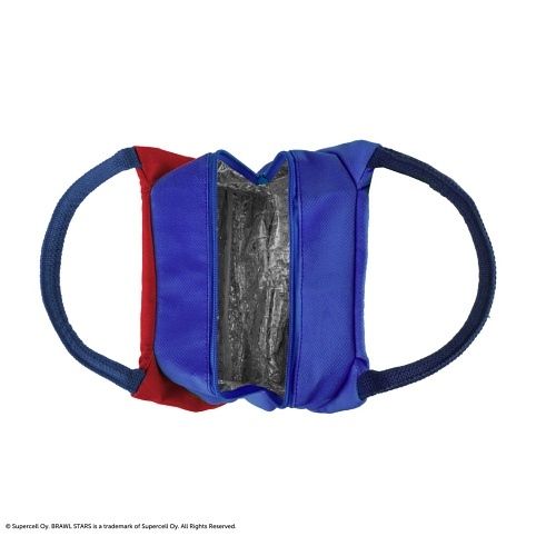 Brawl Stars termo obal na svačinu s motivem El Primo je praktickým a stylovým doplňkem určeným pro děti i mladistvé, kteří jsou fanoušky populární hry Brawl Stars. Tento termo obal má tvar menší tašky s pevnými, tmavě modrými uchy, které usnadňují přenášení. Na přední straně je výrazný motiv obličeje postavy El Primo, který je laděný do sytě modré barvy s červenými a oranžovými detaily, jež dodávají obalu hravý a výrazný vzhled. Zadní strana je červená s žlutým symbolem připomínajícím pás s hvězdou, což ještě více podtrhuje herní téma. Termo obal je vybavený zipovým uzávěrem, který zajišťuje bezpečné uchování svačiny a zároveň umožňuje snadné otevření a zavření. Vnitřek je zateplený izolační vrstvou se stříbrným povrchem, která pomáhá udržet teplotu potravin, ať už jde o teplé nebo studené jídlo. Materiál vnější části je odolný a snadno omyvatelný, což usnadňuje údržbu a zajišťuje dlouhou životnost výrobku. Díky svému menšímu rozměru a lehké konstrukci je tento termo obal ideální volbou pro děti do školy, na výlety nebo sportovní tréninky. Jeho design je zároveň dostatečně univerzální, aby oslovil širokou škálu uživatelů, kteří ocení kombinaci praktičnosti a licenčního motivu oblíbené hry. Originální přívěsek s logem Brawl Stars přidává na atraktivitě a potvrzuje oficiální licenci produktu.