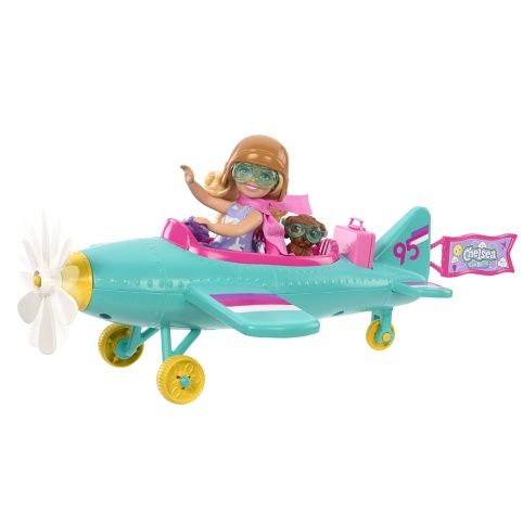 Fantazie může ožít s herním setem Chelsea™ a letadlo, který obsahuje panenku Chelsea™ a cestovního společníka, pejska. Více než osm příběhových doplňků pomáhá rozvinout hru, včetně kufříku a brýlí pro oba cestovatele. Barevné letadlo má pojízdná kola a to