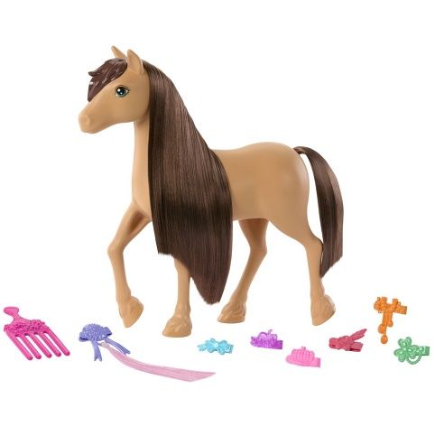 Inspirujte se novým seriálem Barbie® na Netflixu a pusťte se do hry s poníky! Vyberte si nové nejlepší kamarády panenky Barbie®, koníky Tornado a Pepper. Každý má extra dlouhou hřívu a je dodáván s přídavnou hřívou, hřebínkem a šesti roztomilými sponkami.