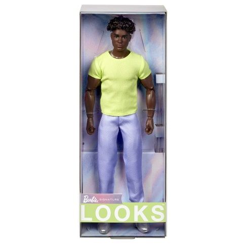 Panenka Barbie® Looks™ Ken v růžových šortkách. Tato módní panenka je vždy připravena na fotografování a inspiruje stylistku, která se v dětech skrývá. Nejnovější řada je plná pastelových a metalických barev a inspiruje se stylem 90. let. Tato polohovatel