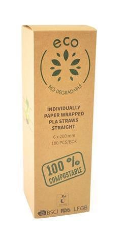 Brčka, rovná, jednotlivě balená, ECO rozložitelná, 100 ks, 20 cm