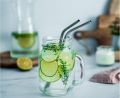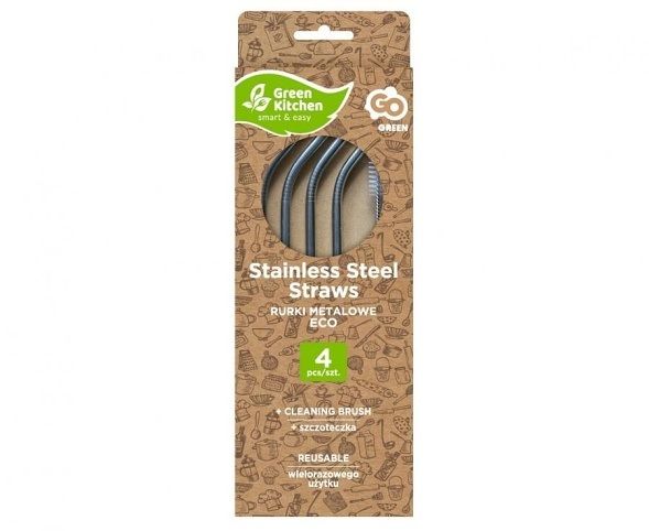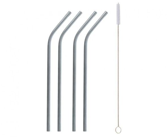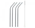Metalické brčka zahnuté ve stříbrném provedení. Brčka pro opakované použití. Kartáček na čištění je součásti balení.