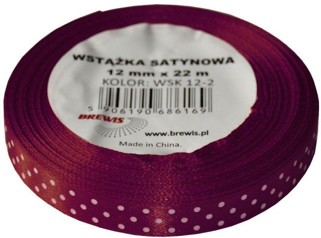 Atlasová stuha jednolící s puntíky 12mm x 22m.