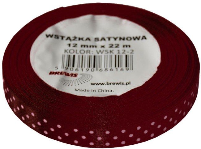 Atlasová stuha jednolící s puntíky 12mm x 22m.