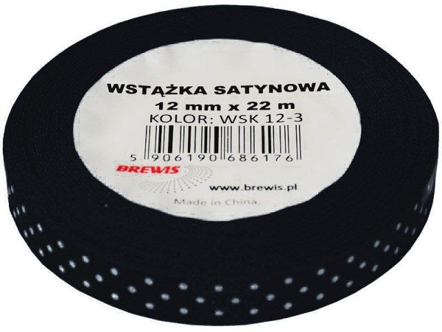 Atlasová stuha jednolící s puntíky 12mm x 22m.
