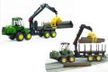 Vyvážecí - John Deere 1210E - Harvestor je víceoperační stroj, který při těžbě dříví kácí, odvětvuje, rozřezává a ukládá strom na valník v jednom cyklu. Harvestor má instalovaný nakladač s drapákem pro nakládání dřeva, který je otočný o 360 stupňů, posuvné klanice, kyvné 4 nápravy pro kopírování náročného terénu při práci v lese. Vůz má na konci další závěsné zařízení pro připojení další vlečky. Kabina traktoru se otáčí o 360 stupňů má otevírací dveře vyplněné polykarbonátem a skládací schody. Součástí vozu je 4 kusy klád.
