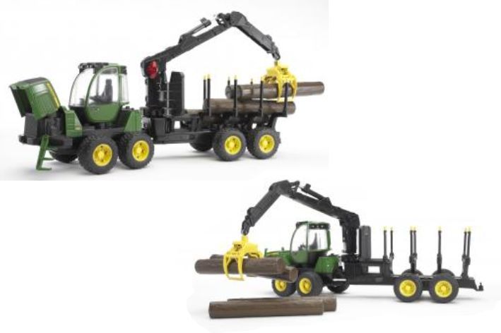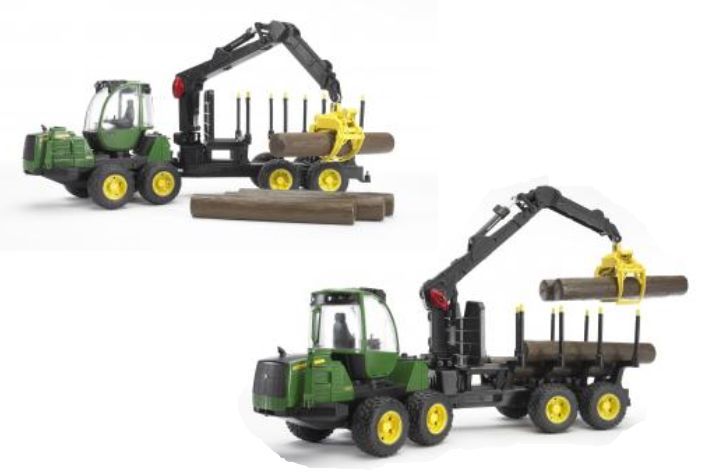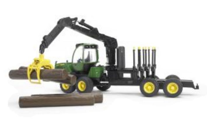BRUDER 02133 (2133)- John Deere 1210E lesnický traktor s přívěsem nakládacím ramenem