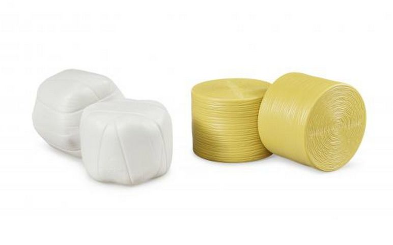 Tato sada obsahuje 4 kulaté balíky - 2 bílé a 2 žluté. Nejvhodněji doporučujeme kombinovat s lisem na kulaté balíky Claas Rollant 250, který lze najít pod číslem 02121 a navíječkou balíků číslo 02122.