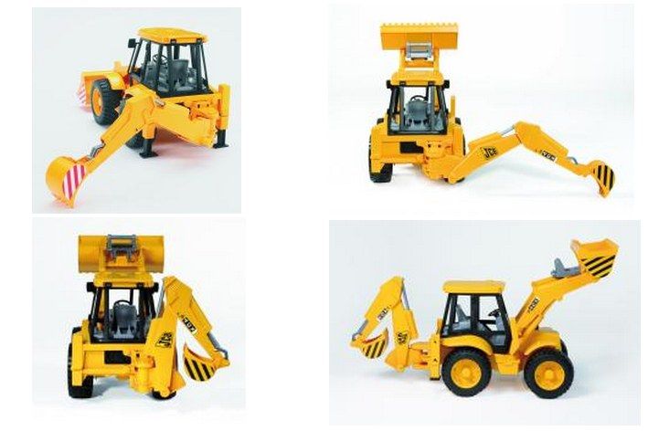 BRUDER 2428 - 02428 Traktor JCB – oboustranný nakladač - čelní lžíce + zadní bagr. Velmi pěkný a univerzální nakladač s čelní lžící a zadní možností bagrování, se kterým můžeš přemístit nebo naložit spoustu nákladu. K pevnějšímu upevnění pozice slouží výsuvné opěrné nohy.