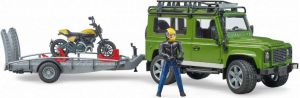 BRUDER 02589 (2589) LAND ROVER, přepravník, figurka, motocykl