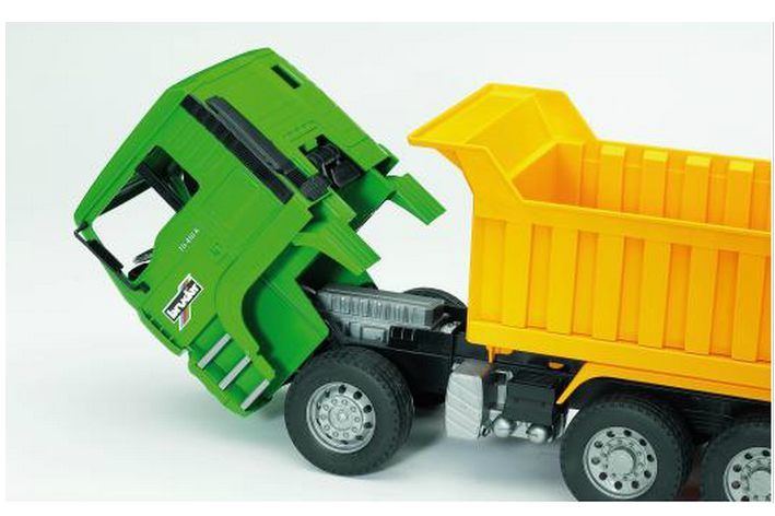 BRUDER 02765(2765) MAN TGA sklápěč - klasický nákladní vůz se sklopnou korbou. Vůz má sklopnou kabinu , měkké pneumatiky a závěsné zařízení. Lze instalovat zvukový a světelný maják č.2801. Vhodný doplněk - přívěs č.2710). Rozměry 450x175x220 mm. Od 3let