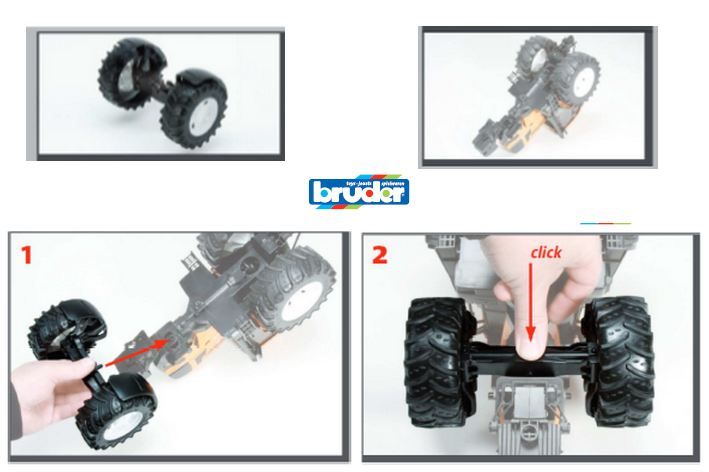 -BRUDER 43046 - Náhradní díl Přední náprava pro řadu traktorů 30.. barva disků: TM.ČERVENÁ