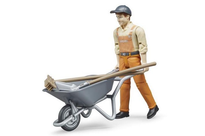 BRUDER 62130 Bworld Figurka - komunální pracovník + kolečka + nářadí