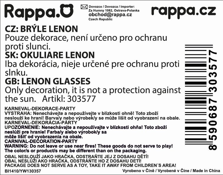 Legendární "LENONKY" jsou perfektním doplňkem na diskotéku či karneval. Tyto parádní vychytávky s barevnými sklíčky ti nesmí na žádném večírku chybět! Staň se hvězdou večera díky těmto nepřehlédnutelným brýlím a ohrom všechny účastníky večírku!