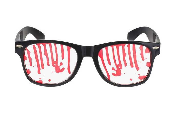 Děsivé karnevalové brýle, které vypadají jako potřísněné krví! Vhodné ke kostýmu maniaka, sériového vraha, šílence či jiného pomatence.