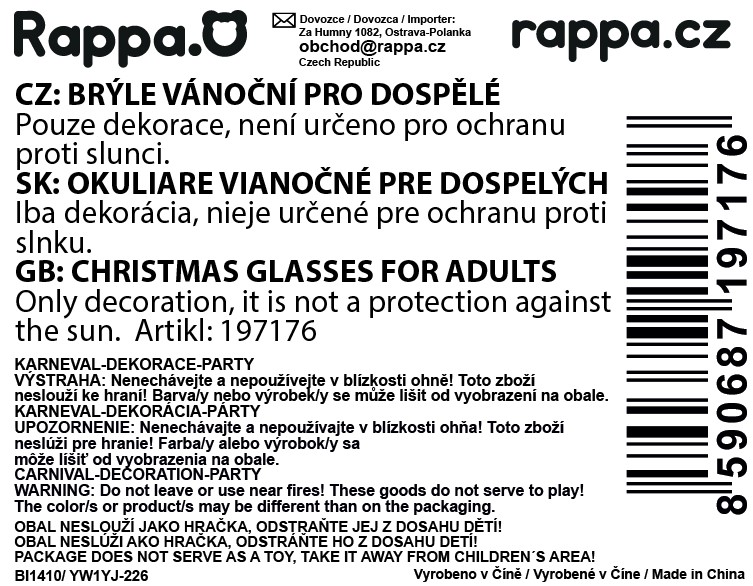 Karnevalové brýle ve vánočním stylu! Brýle jsou vyrobeny z PVC a zdobeny motivem vánočních stromečků. Perfektní doplněk na Vánoce!