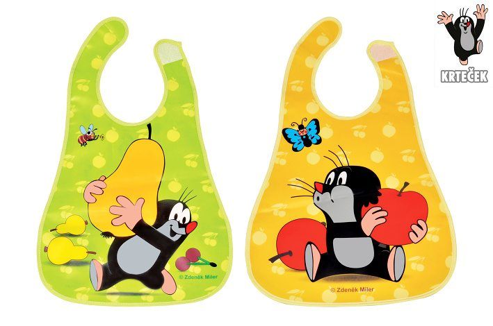 Krásný dívčí a klučičí bryndáček s motivem pohádkového Krtečka. Nejenom ochrání oblečení dítěte před znečištěním, ale zároveň vykouzlí úsměv na tváři dítěte. Zapínání na suchý zip.