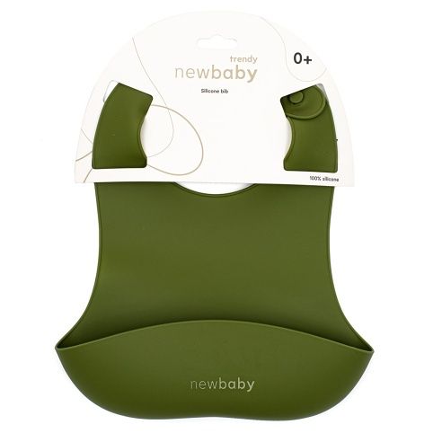 "Pomocník, který spojí styl a funkčnost – dětský silikonový bryndák New Baby Trendy. V elegantní olivově zelené barvě se dokonale hodí k jakékoli příležitosti. Je navržen tak, aby zpříjemnil krmení vašeho děťátka a zároveň usnadnil život rodičům.