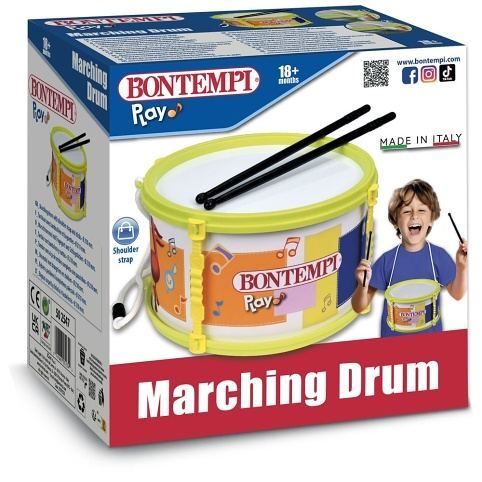 Pochodový buben s ramenním popruhem a paličkami • Realistický zvuk • Rozměr: 210×210×115