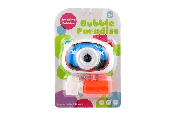 Dětský bublifuk ve tvaru fotoaparátu dokáže vytvořit nekonečné množství bublin. Nejdříve je třeba nasadit lahvičku s mýdlovým roztokem přímo do boční části bublifuku. Zmáčknutím spouště fotoaparátu se začnou z přední části generovat bubliny za současného zvuku melodie a focení. Součástí balení je i popruh k zavěšení fotoaparátu kolem krku.