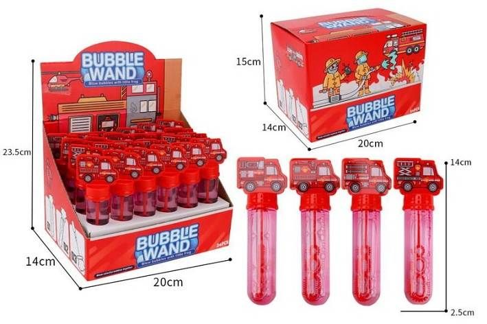 Bublifuk hasičské auto. Velikost 14 cm. Přesné rozměry lahvičky 2,5x2,5x14 cm. Display box - 24 cm. 4 varianty.