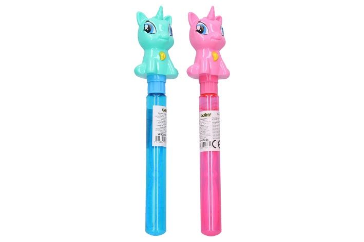 Bublifuk jednorožec 75 ml, délka 29 cm. 16 ks display box. 2 varianty - růžová, zelená.