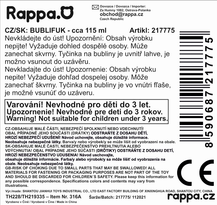 Barevná lahvička s bublifukem má obsah 115 ml. Foukátko je součástí víčka. Nekonečná zábava se spostou bublinek, kdo udělá větší? Komu první praskne a která doletí dál?