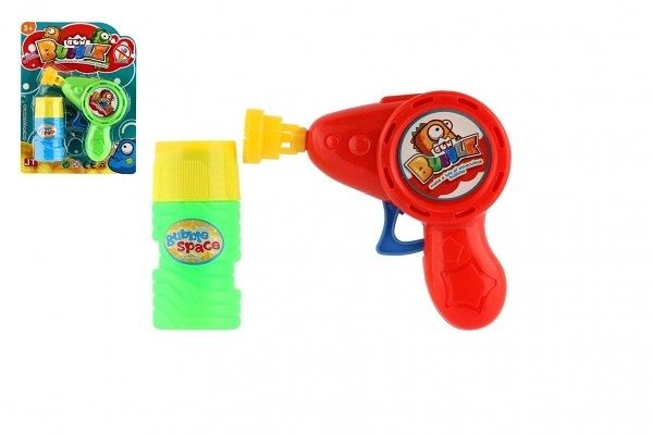 Bublifuk pistole plast 12x11cm + náplň na setrvačník 2 barvy na kartě