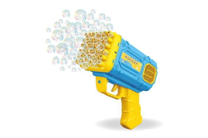 Bublifuk pistole automatická. Vydává světelné efekty. Rozměry pistole 15,5x14,5x7,5 cm. Nádržka o objemu 50 ml. Baterie 4xAA, nejsou součástí balení.
