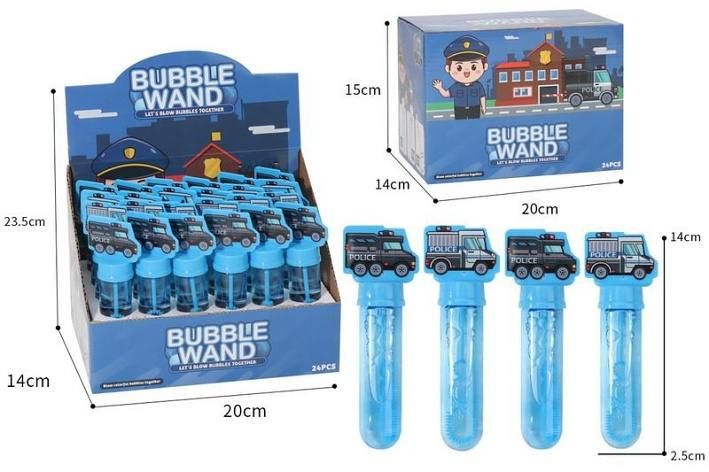 Bublifuk policejní auto. Velikost 14 cm. Přesné rozměry lahvičky 3x3x14 cm. Display box - 24 cm. 4 varianty.